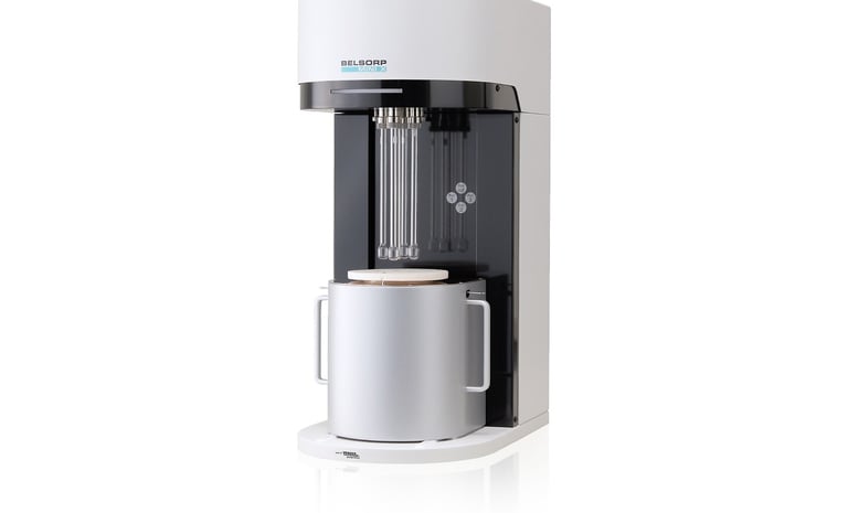 가스 흡착법(BET 이론)을 기반으로 시료 표면에 흡착되는 기체의 양을 정량적으로 분석하여, 비표면적 및 기공 특성을 평가하는 장비이다. 주로 질소(N₂) 흡착–탈착 등온선을 이용하여 다공성 재료의 표면 및 구조적 특성을 정밀하게 분석한다.